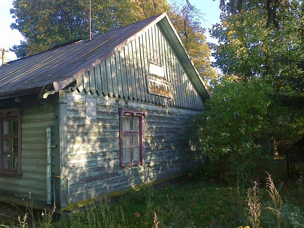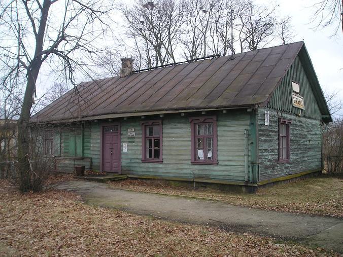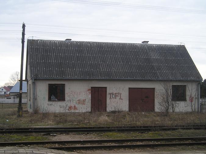 Budynek stacyjny. Widziany od strony wejścia. Stan - tragiczny z plusem. Budynek jest opuszczony, poczekalnia w prawdzie otwarta ale nie zachęca do poczekania na szinenbusa:] budynek drewniany - prawdopodobnie nie zamieszkały.