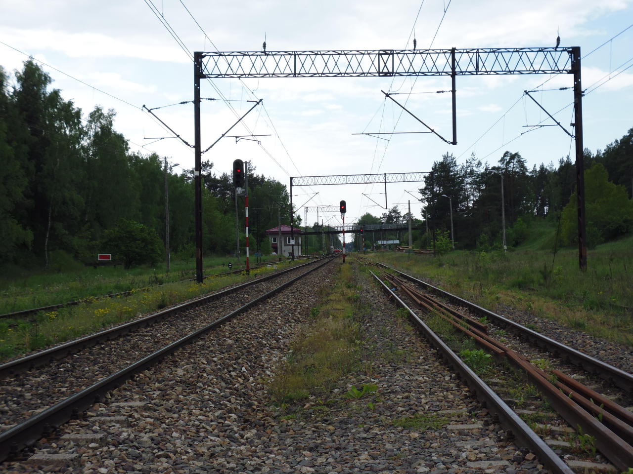 Głowica południowa. W tle nastawnia wykonawcza i wiadukt kolei wąskotorowej. Wyjazd w kierunku Białegostoku.