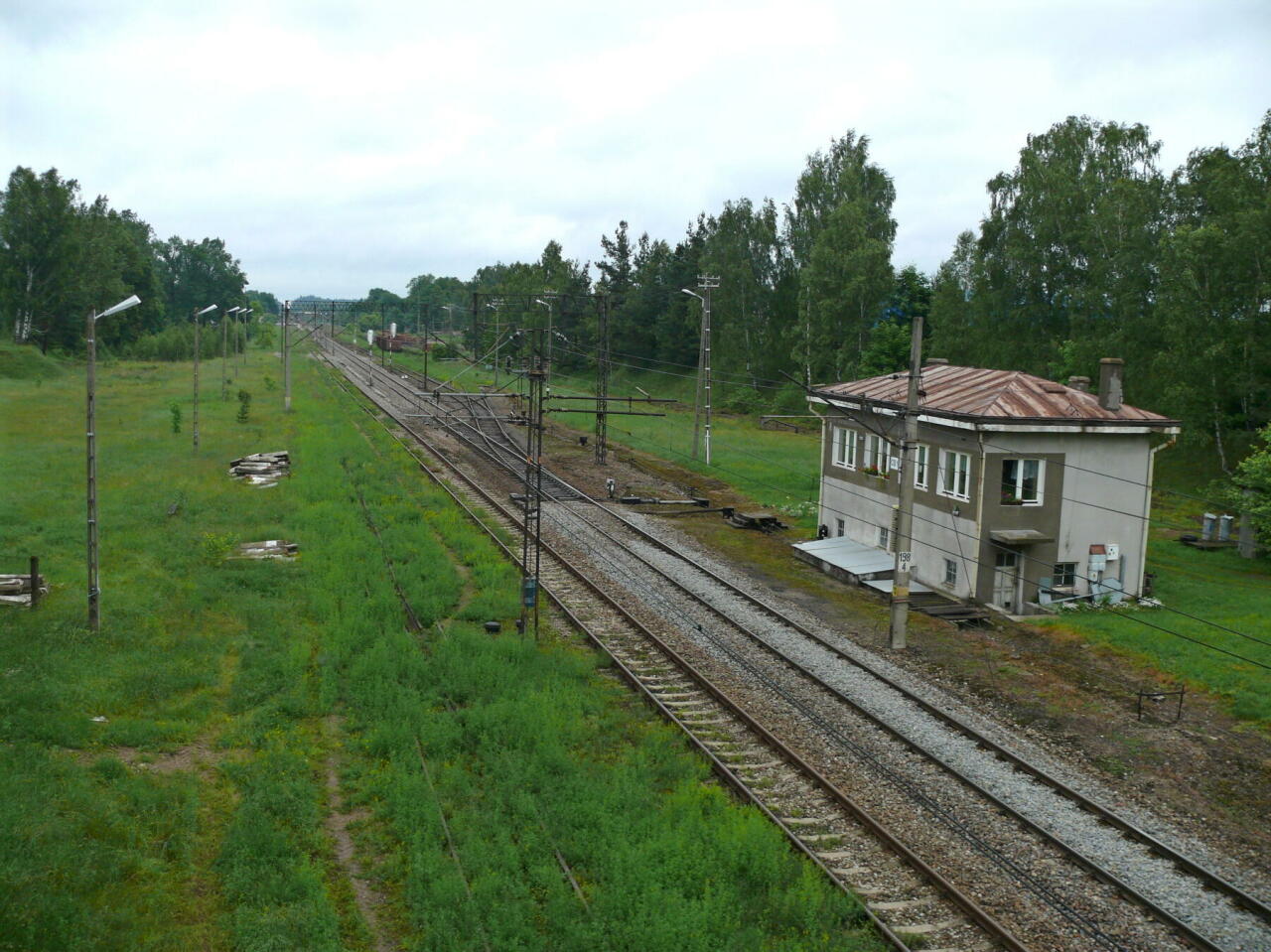 Wjazd od strony Białegostoku. Z prawej nastawnia wykonawcza. Zdjęcie wykonane z wiaduktu kolei wąskotorowej.
