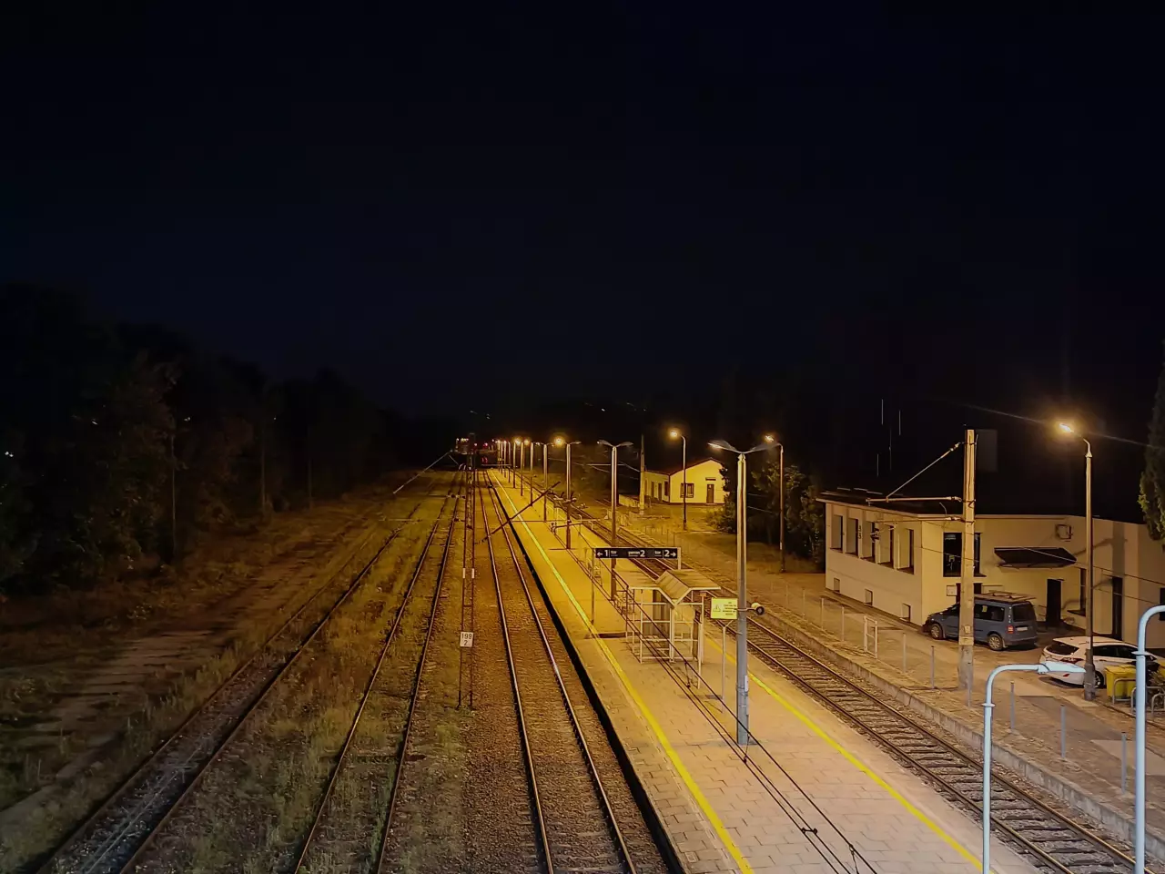 Stacja nocną porą, widok w kierunku Suwałk/Kuźnicy Białostockiej.