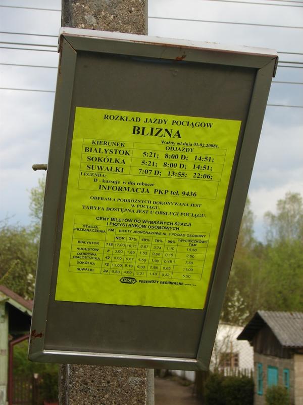| Przez pewien czas Blizna była stacją graniczną po niemieckiej stronie w wyniku wytycznenia linii demarkacyjnej na podstawie paktu Ribbentrop-Mołotow. |
