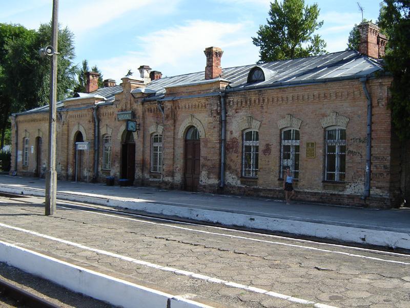 Budynek dworca od strony peronów. W lewo Sokółka, w prawo Suwałki. Zdjęcie z kładki nad torami.