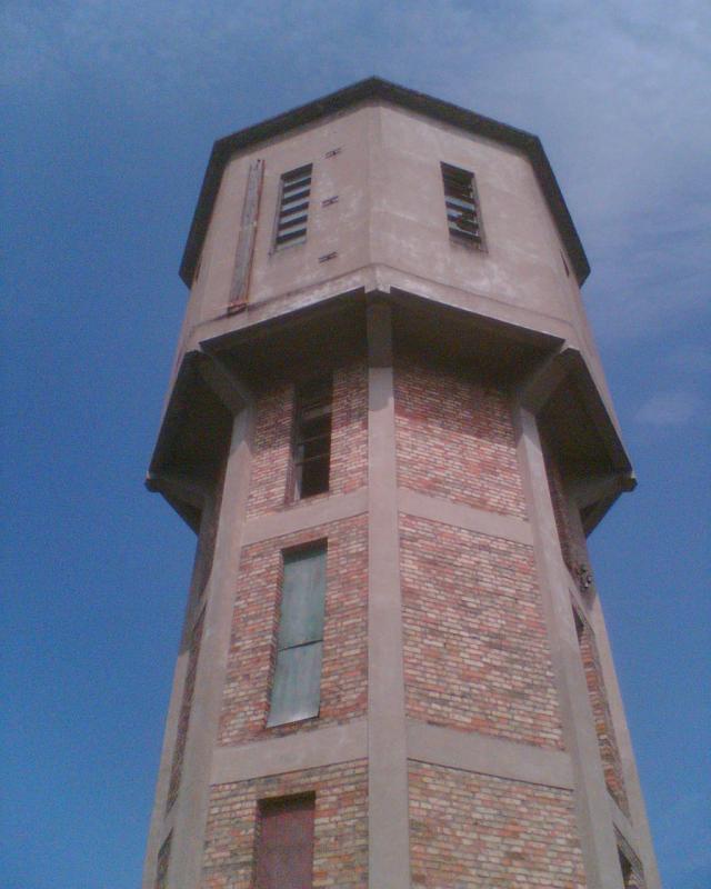 Wieża ciśnień. Z zewnątrz wygląda całkiem przyzwoicie choć jest od lat nieczynna; obecnie obiekt do wynajęcia…