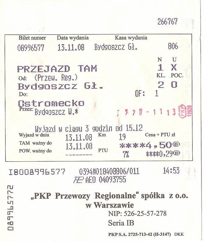 Bilet wystawiony w I-szym dniu wznowienia regularnej komunikacji tj. po 8-miu latach, 7-miu miesiącach i 11-tu dniach przerwy.