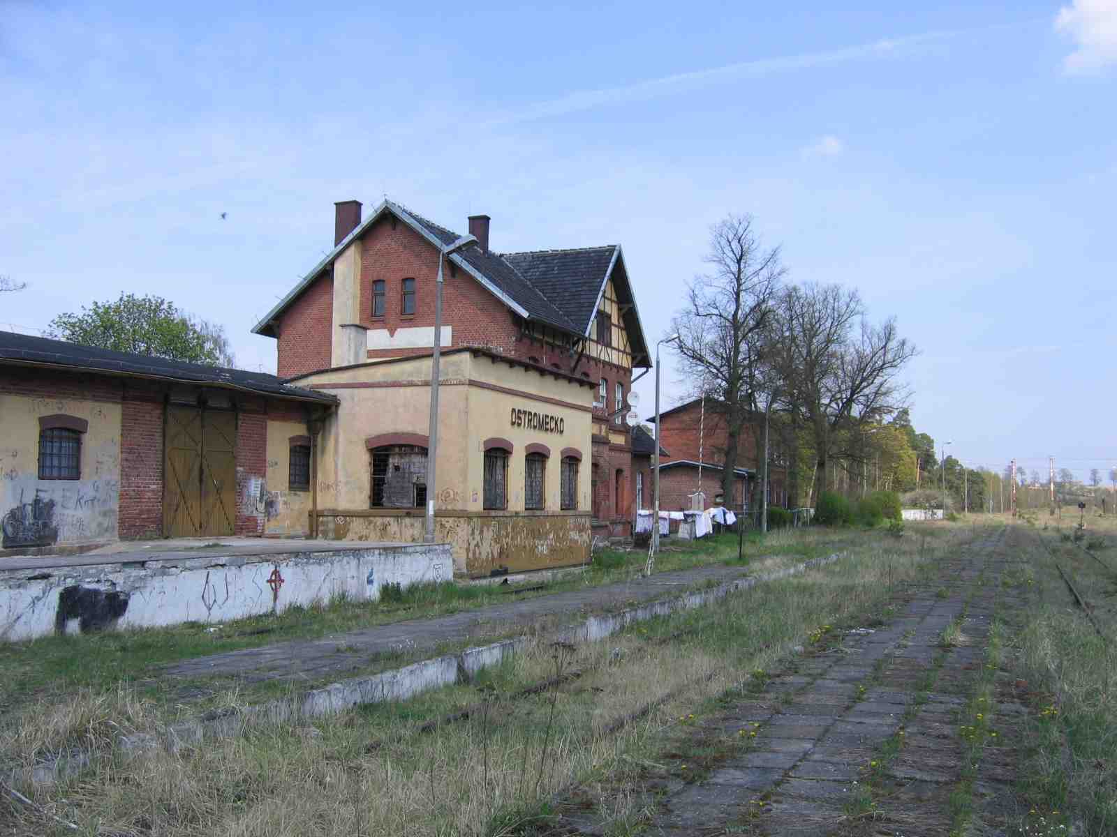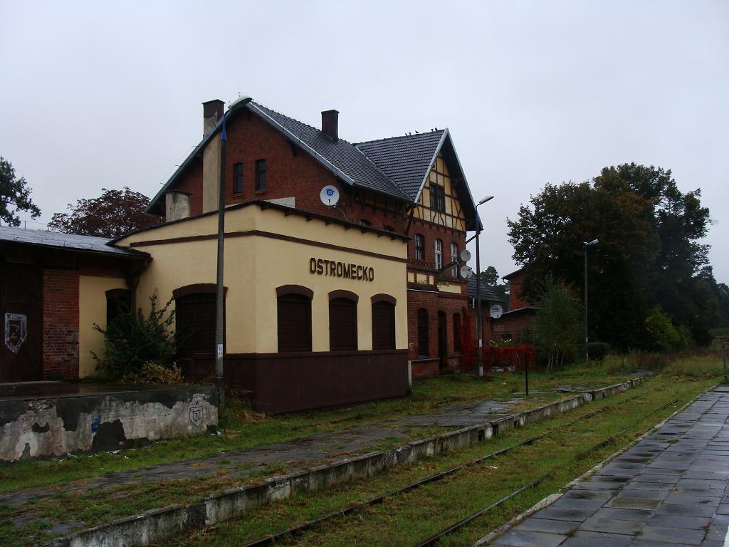 Przedostatnia ocalała nazwa stacji Ostromecko. Widoczna nazwa "Ostrometzko" z lat wojny.