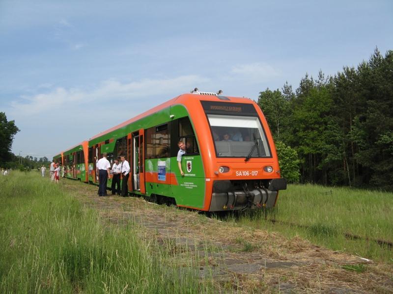 SA106-017 jako pociąg nadzwyczajny nr 11623 relacji Toruń Wsch. – Bydgoszcz Gł. podczas postoju na stacji Ostromecko.