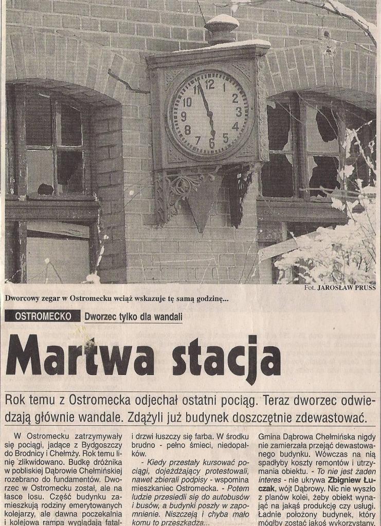 Artykuł o stacji Ostromecko z 2001-go roku.