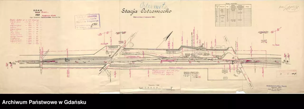 Plan schematyczny stacji Ostromecko. Stan na 1 stycznia 1931r.