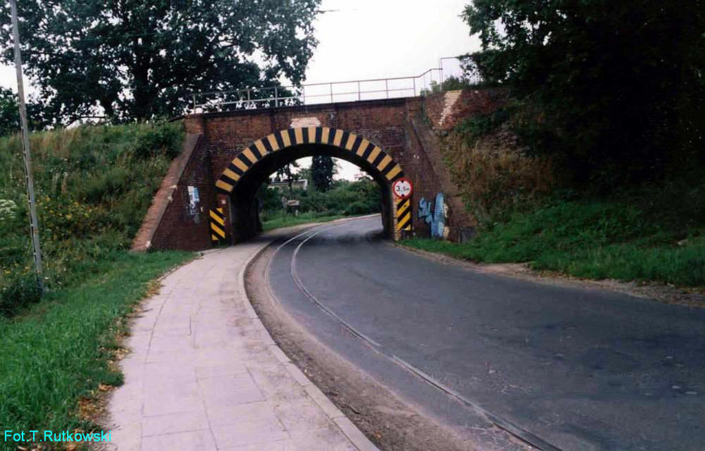 Wiadukt nad ul. Wojska Polskiego, pod północną głowicą normalnotorowej stacji Milicz i śladami torowiska wąskotorowego. Widok od strony Milicza Wąsk. w kierunku Sulmierzyc.