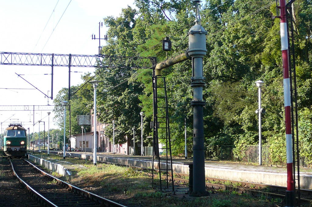 Żuraw wodny i jeden z semaforów wyjazdowych do Krotoszyna. Widok w kierunku północno-wschodnim.