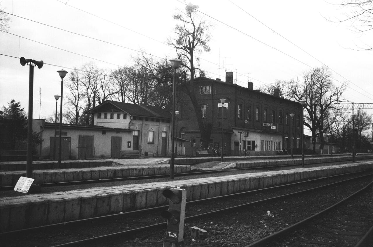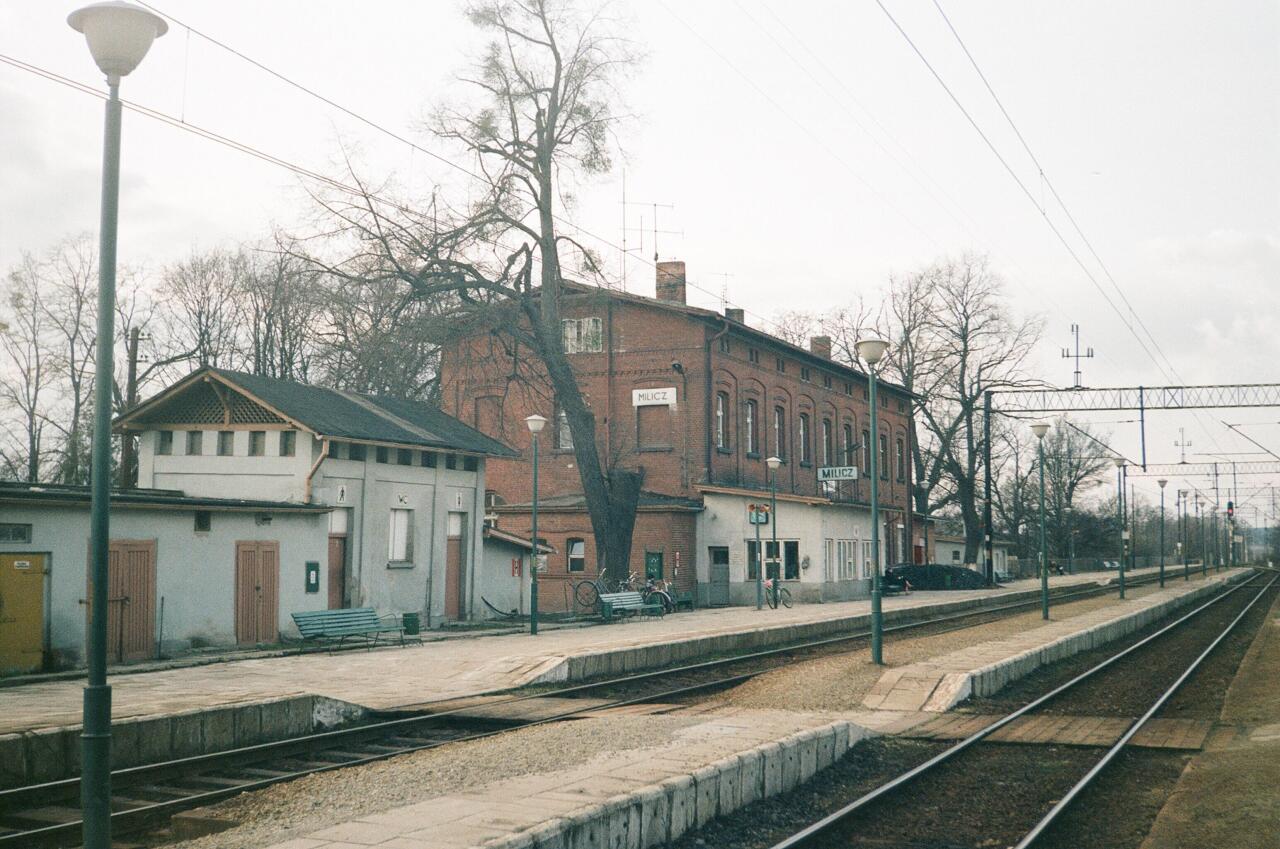 Stacja Milicz - budynek stacyjny, widok w kierunku stacji Krotoszyn (Chojnice).