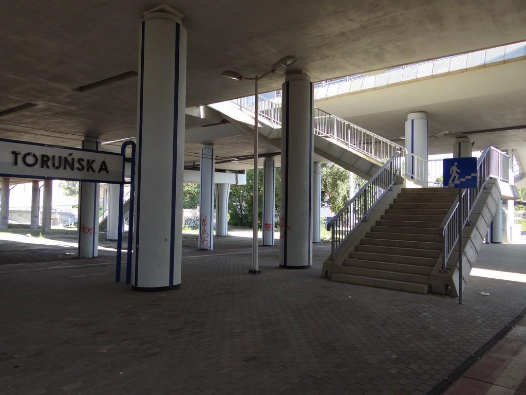 Opis ogólny: Zadaszeniem peronów jest estakada ulicy Toruńskiej, zaś przejścia nadziemne prowadzą na tę estakadę. Info: JJC Nazwa przystanku wzięła się od przebiegającego nad nim wiaduktu Trasy Toruńskiej. Przystanek chętnie odwiedzany przez miłośników kolei (z wiaduktu roztacza się bardzo dobry widok na stację towarową Warszawa Praga wraz z czynną górką rozrządową), ale korzysta z niego stosunkowo niewielu podróżnych. (info: Jerzy Mrozowski, 2006-08-21) Opis infrastruktury: Zjazd z peronu dla wózków i rowerów tylko od str. północnej i to dla wytrwałych, tzn. wyprowadzenie ruchu "kołowo-pieszego" (rowery, wózki dziecięce i ew. osoby niepełnosprawne) ze stacji jedynie za pomocą krętej ścieżki w kierunku ulicy Marywilskiej z przechodzeniem przez tor w miejscu całkowicie nieprzygotowanym. stacja niepolecana dla rowerzystów. (info: adam w, 2007-06-08) |