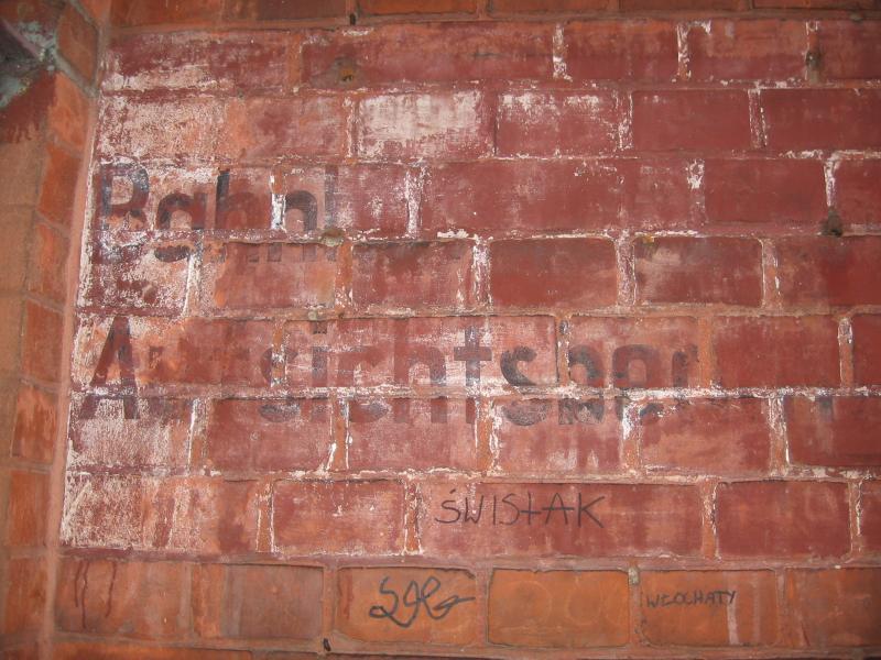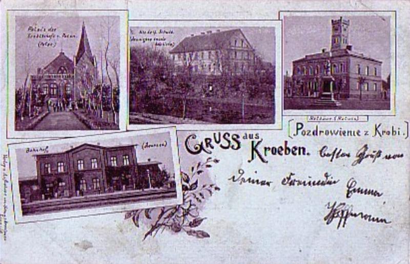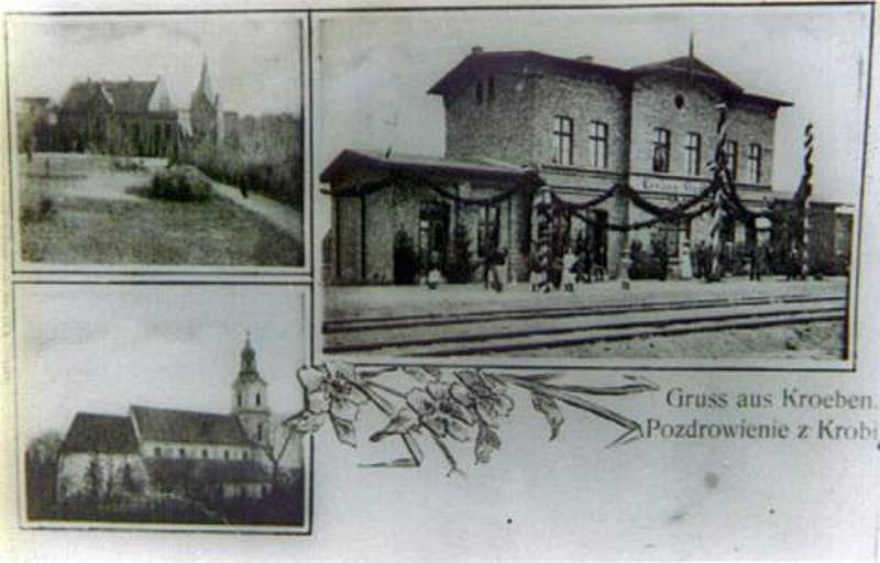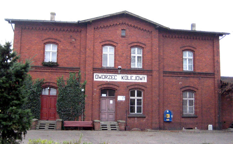 Stare, jeszcze niemieckie napisy na budynku stacyjnym w Krobi.
