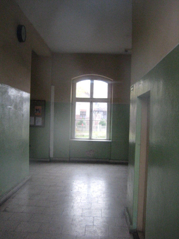 Stacja PKP Krobia. Spojrzenie do wnętrza budynku dworcowego.