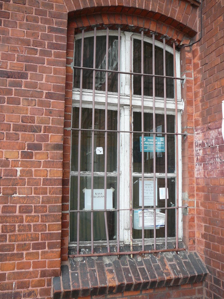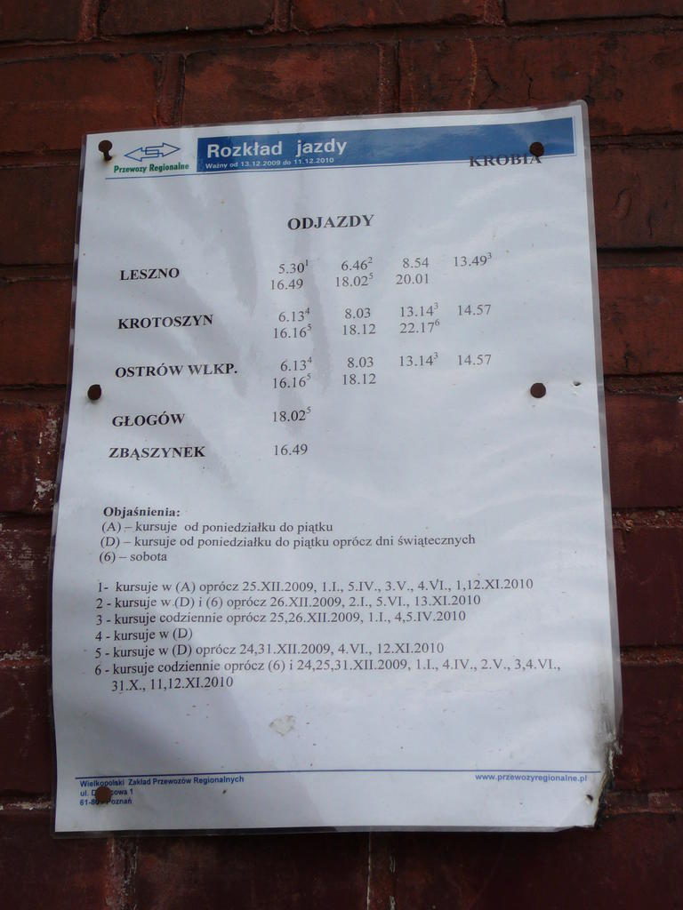 Krobia. Tablica ogłoszeń w oknie dworca od strony torów.