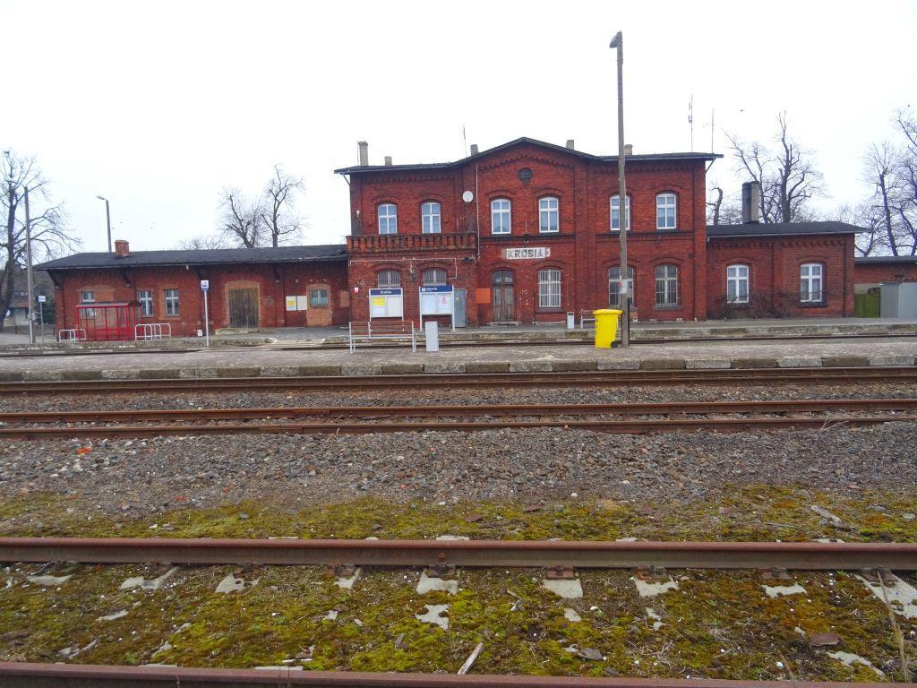 Na oknie obok wyjścia na perony wisi kartka z napisem Kasa nieczynna. Pociągi zapowiadane ale z nagrania, (info: Damian Kaczor, 2008-06-15) Opis budynków: Górna część budynku zamieszkana (info: Damian Kaczor, 15-06-2008) Przy budynku stacyjnym postawiono wiatę z zadaszeniem. (info: Damian, 15-08-2014). W 1954 roku zmieniono prawdopodobnie układ torowy stacji Krobia, przebudowując rozjazdy w zachodniej głowicy stacji, co uniemożliwiło bezmanewrowy przejazd z Miejskiej Górki do Gostynia. Dziwna decyzja, bo dodawało to 15-20 minut na niepotrzebne manewry na stacji, i na pewno obniżało atrakcyjność czasu przejazdu. |