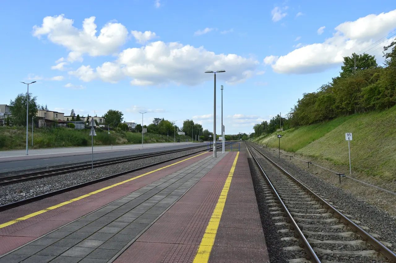 dodatkowe tory: 2014-12: Linia po remoncie. Stan torów b. dobry. Jeden tor główny zasadniczy i jeden tor główny dodatkowy. Jeden tor ze zwrotką ręczną boczny przy rampie ładunkowej zakończony kozłem oporowym zamykany Wk. (info: DK)