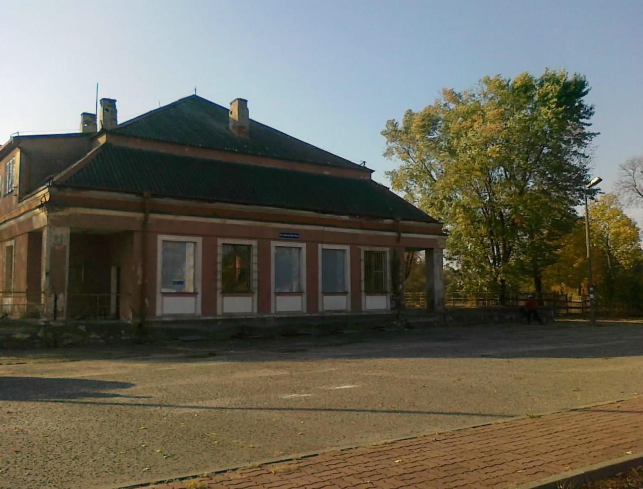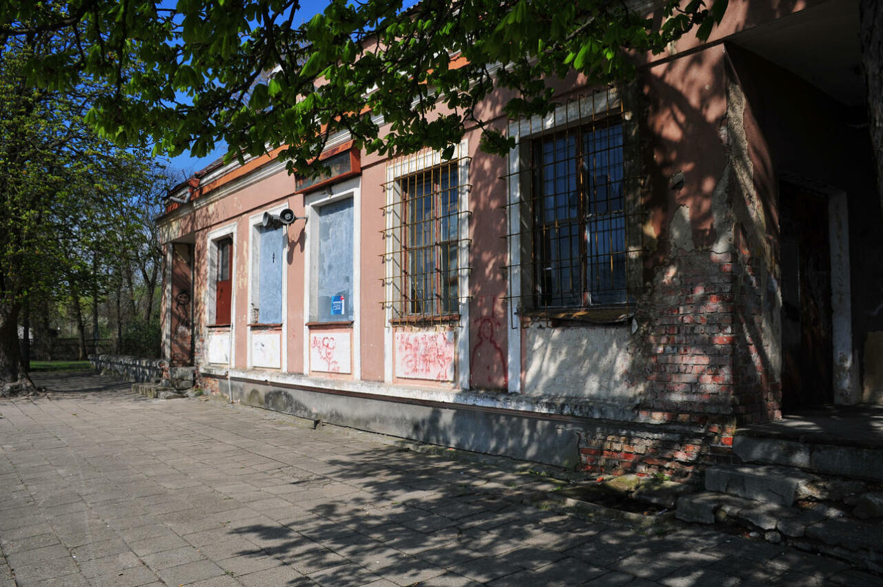 Rozpadający się budynek dworcowy.