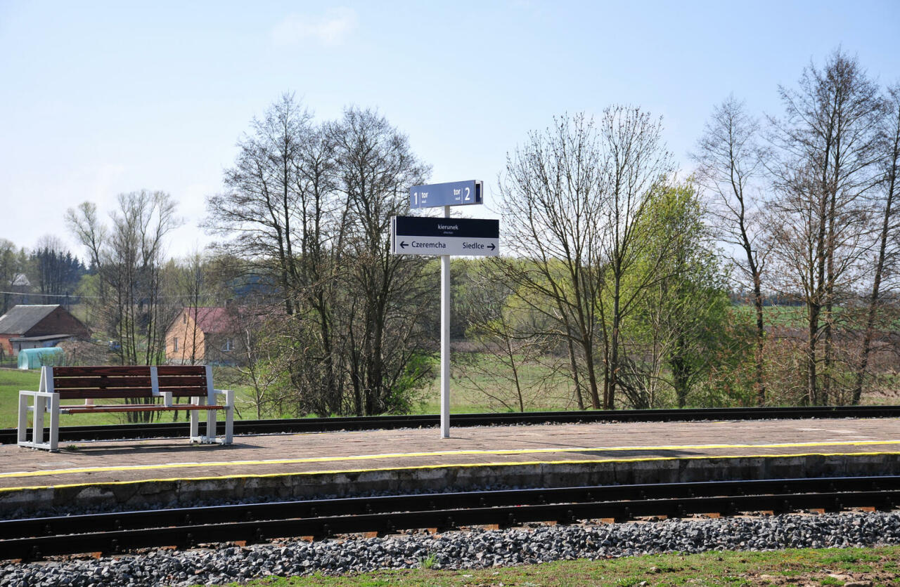 Peron. Z prawej, poza kadrem dworzec, w lewo wyjazd na Siedlce.