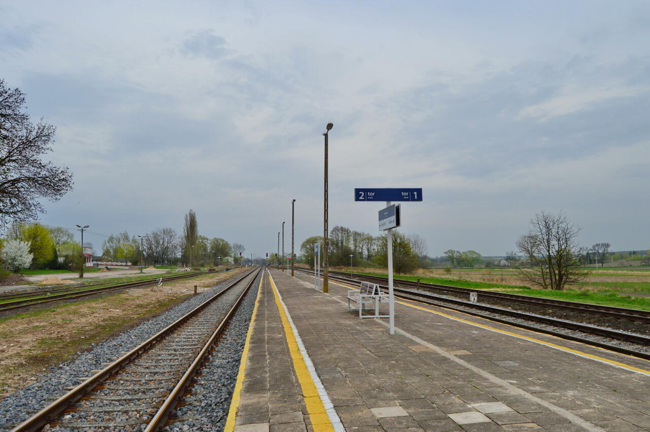 Widok na peron i tor nr 1 i nr 2.