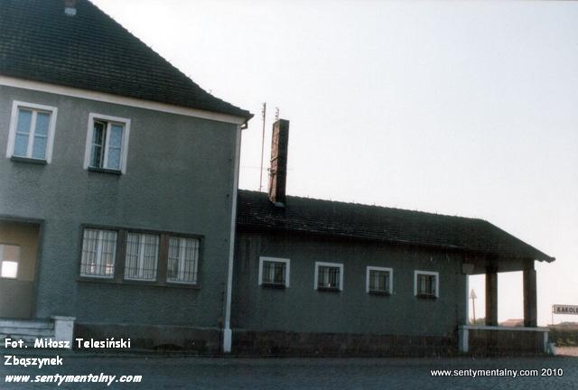 Budynek dworca, z prawej perony. Widok w kierunku wschodnim, od strony wjazdu z Leszna.