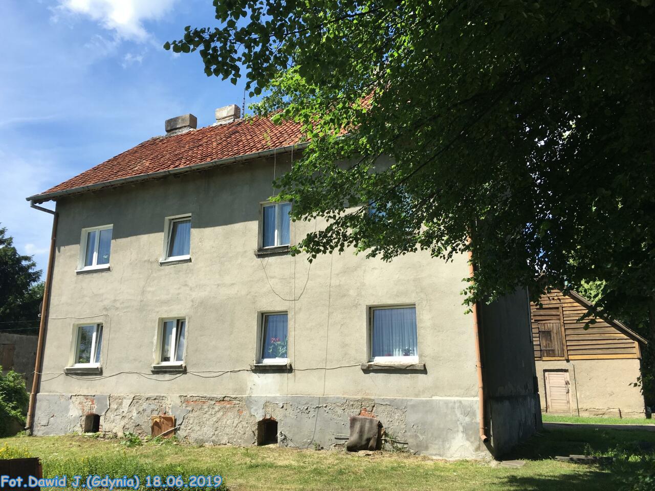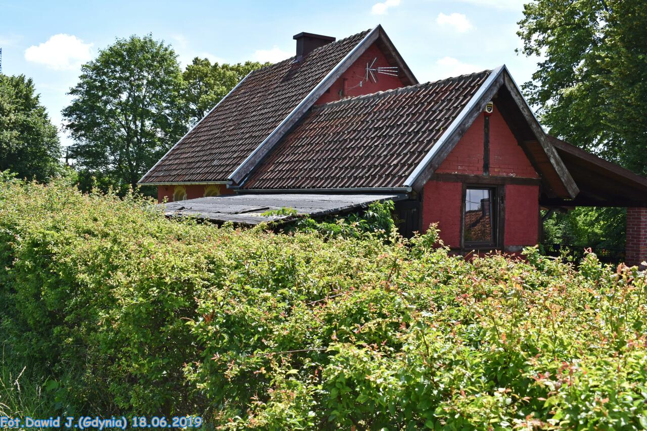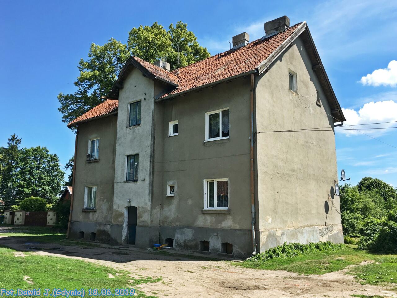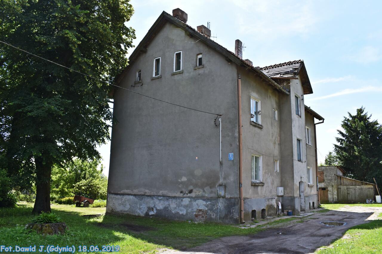 Jednorodzinny budynek mieszkalny, zwyczajowo zwany 'domem toromistrza'. Na PKP przebito wejście od strony peronu adaptując przylegające pomieszczenia na poczekalnię i kasę. Zaplecze służbowo-gospodarcze zamknięte poprzecznie budynkiem szaletów.