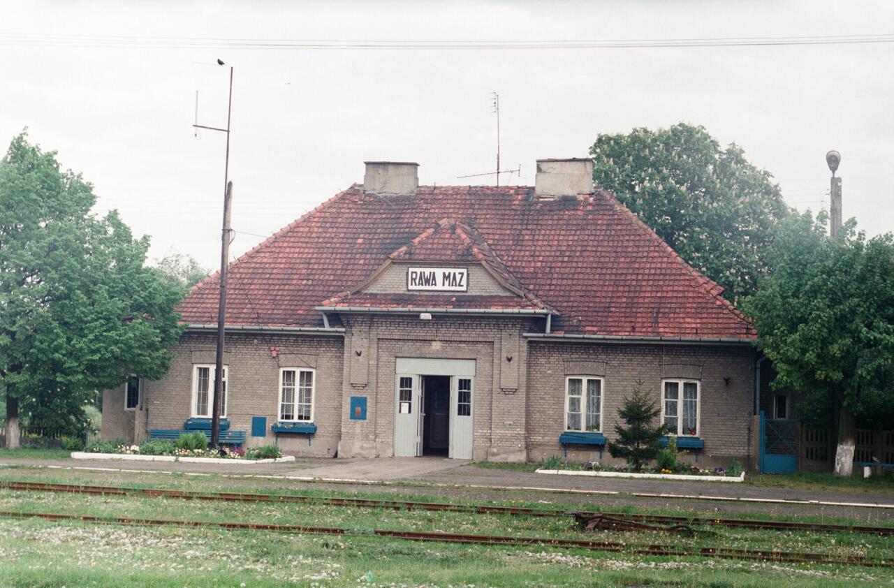 Dworzec na stacji Rawa. Widok od strony peronów; w lewo Biała Rawska, w prawo Rogów.