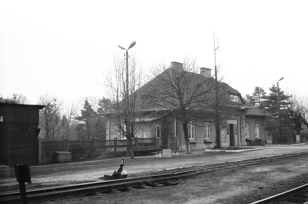 Budynek dworca od strony peronów i wjazdu z Rogowa Wąskotorowego.