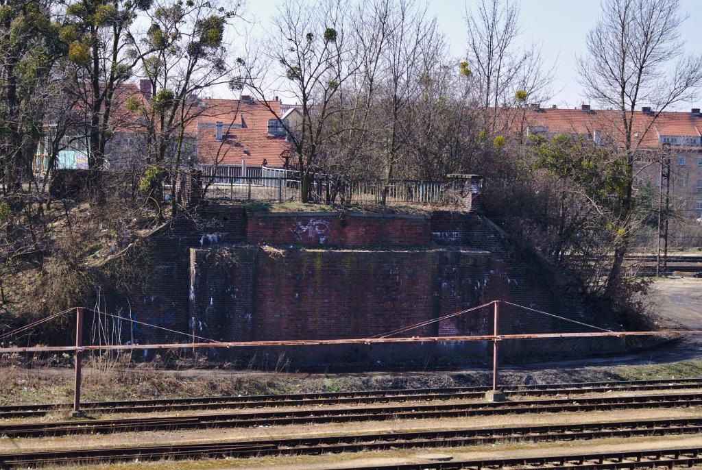 Przyczółek dawnego wiaduktu łączącego Brochów i Księże. Obecnie z boku jest kładka dla pieszych.