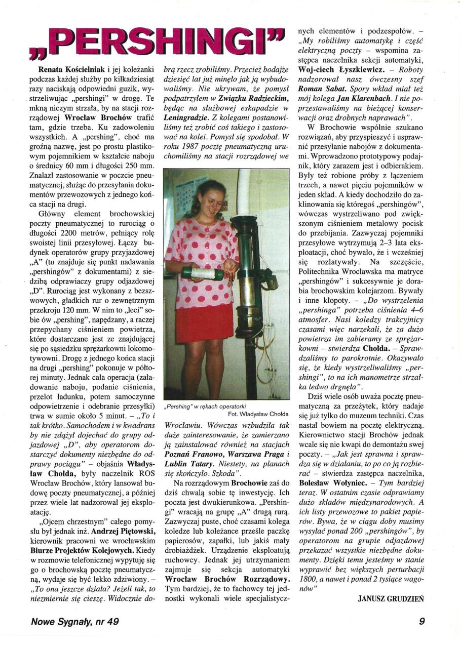 Skan artykułu z Nowych Sygnałów nr 49/97 o poczcie pneumatycznej na stacji Wrocław Brochów.