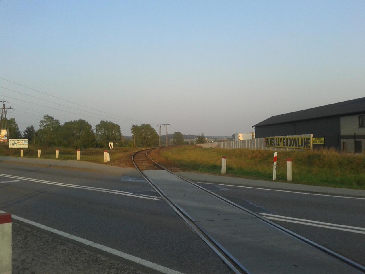 Przejazd przez ul. Kolejową. Za przejazdem ok 500 m znajduje się most w Rutkach. Widok w kierunku Glincza.