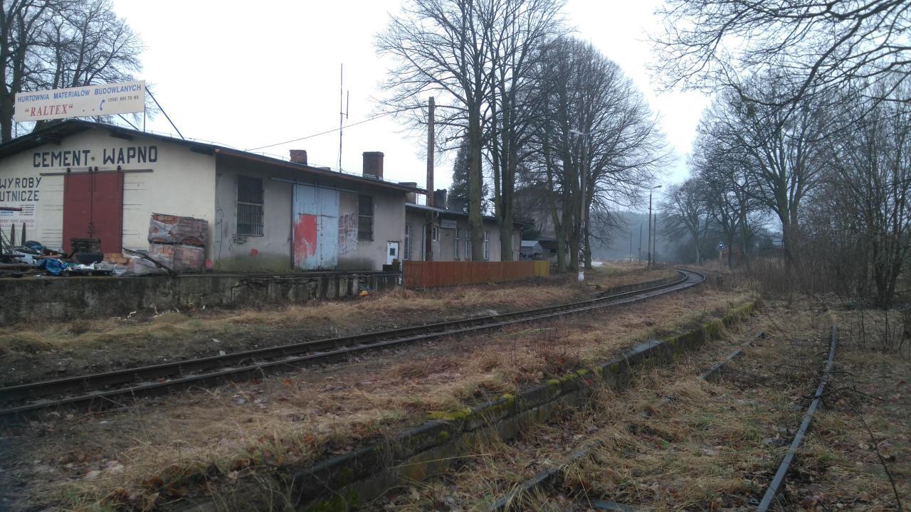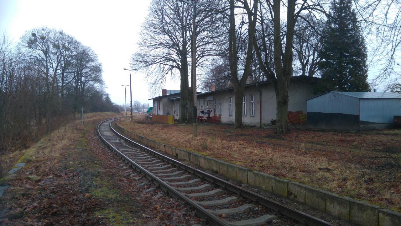 Wjazd na stację od strony Glincza. W tle kolejowy budynek mieszkalny.