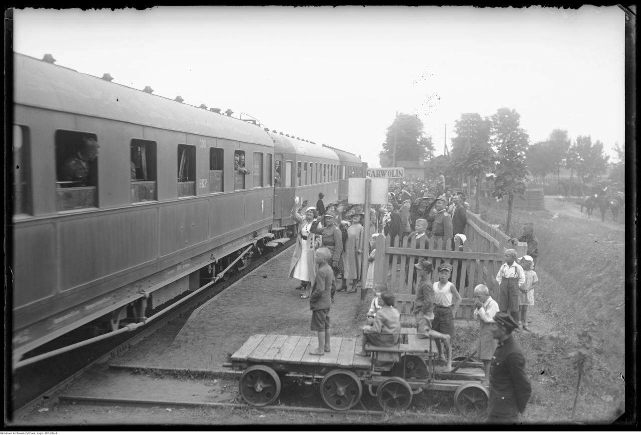 Stacja Garwolin. W tle budynek stacji kolejowej PKP - rok 1938.