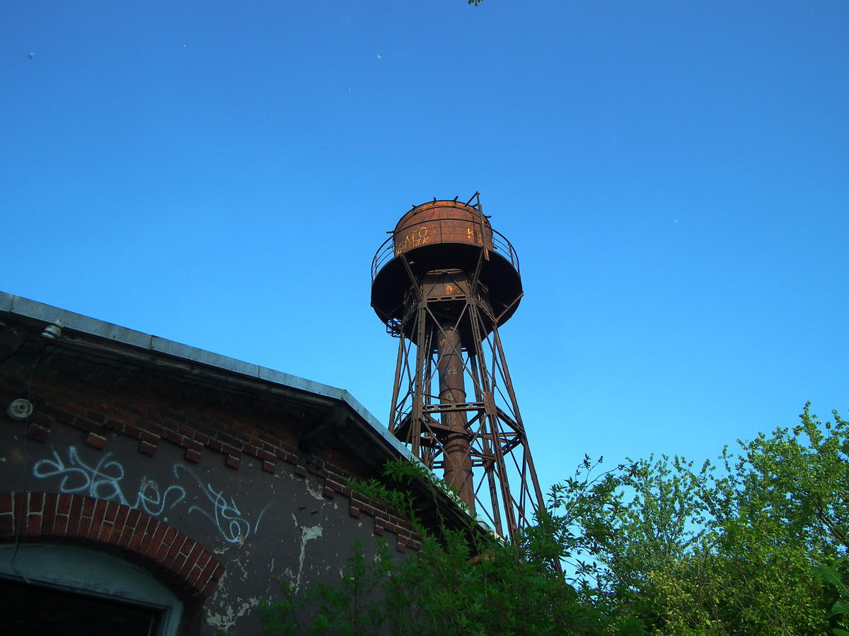 Wieże wodne widziane od strony dawnej Lokomotywowni/ wagonowni.