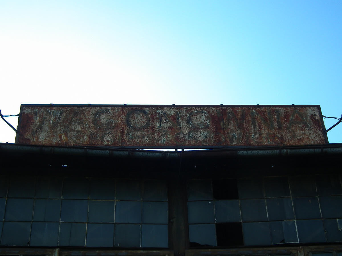 Napis na 12-to stanowiskowej dawnej lokomotywowni- WAGONOWNIA.