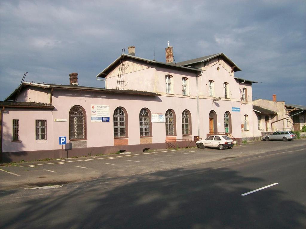 Budynek nieczynnego dworca od strony ulicy.