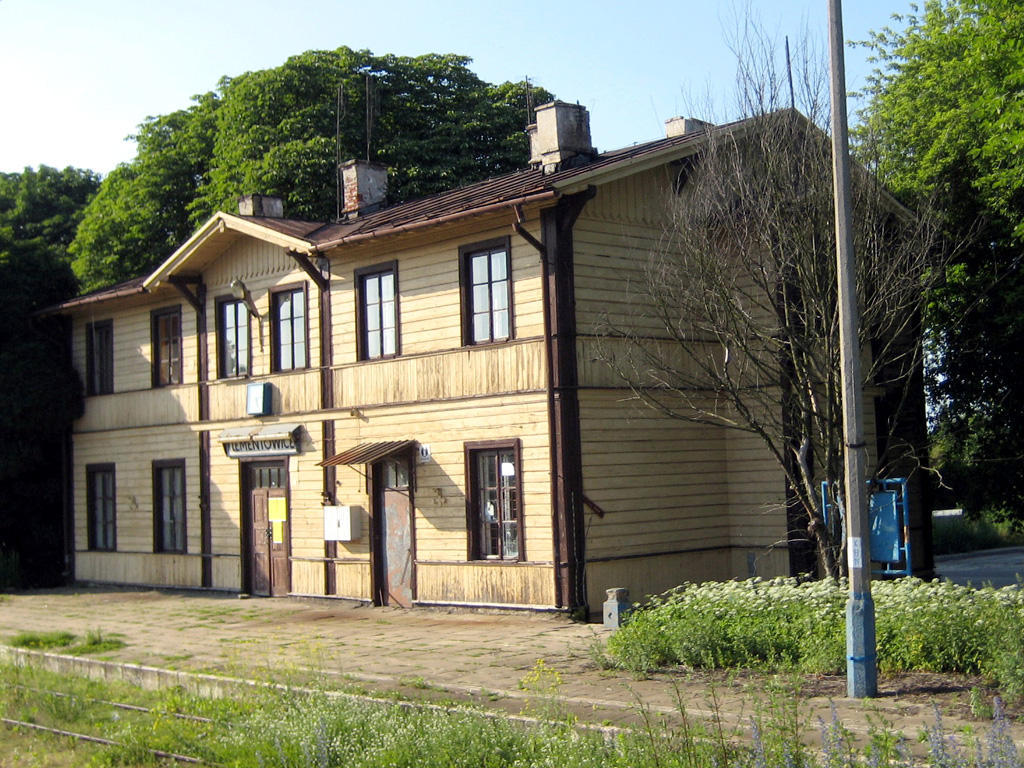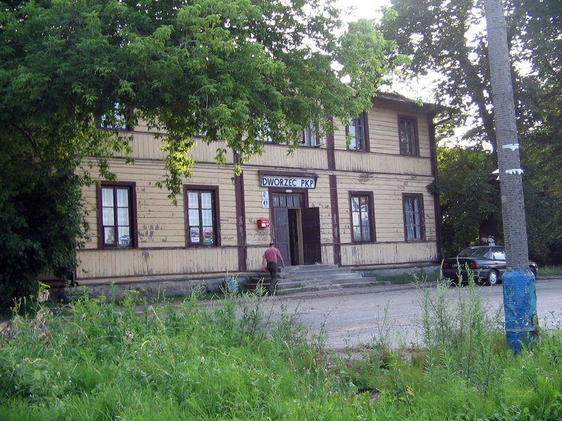 Budynek dworcowy. Widok z pociągu relacji Lublin - Dęblin.