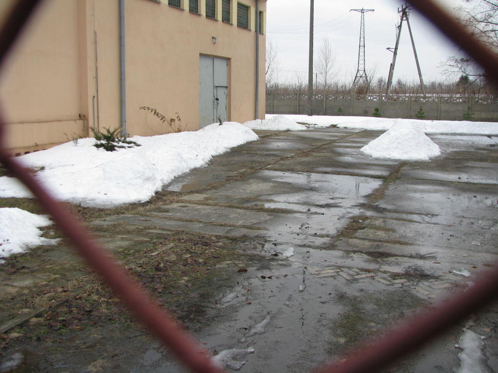 Istniejący tor za ogrodzeniem chroniącym budynki podstacji trakcyjnej.