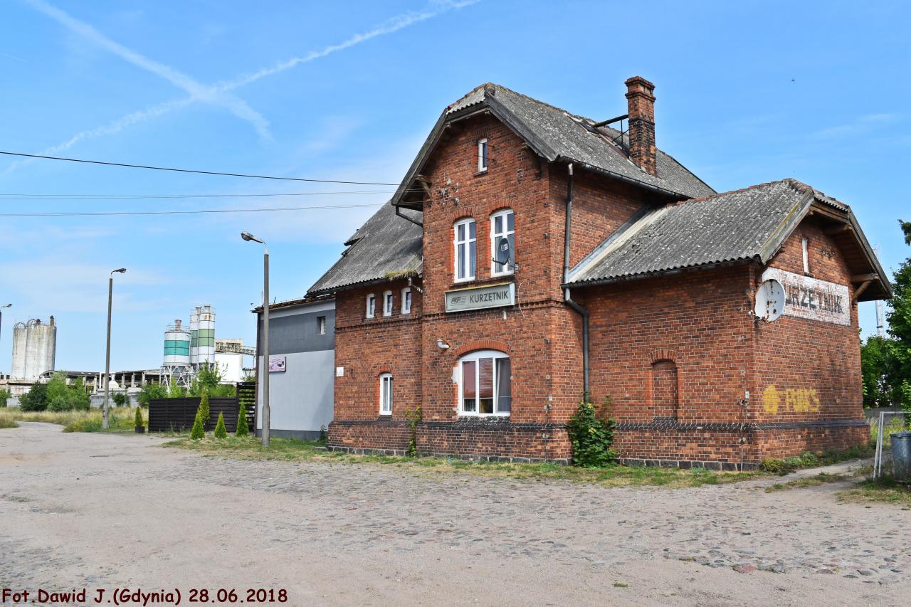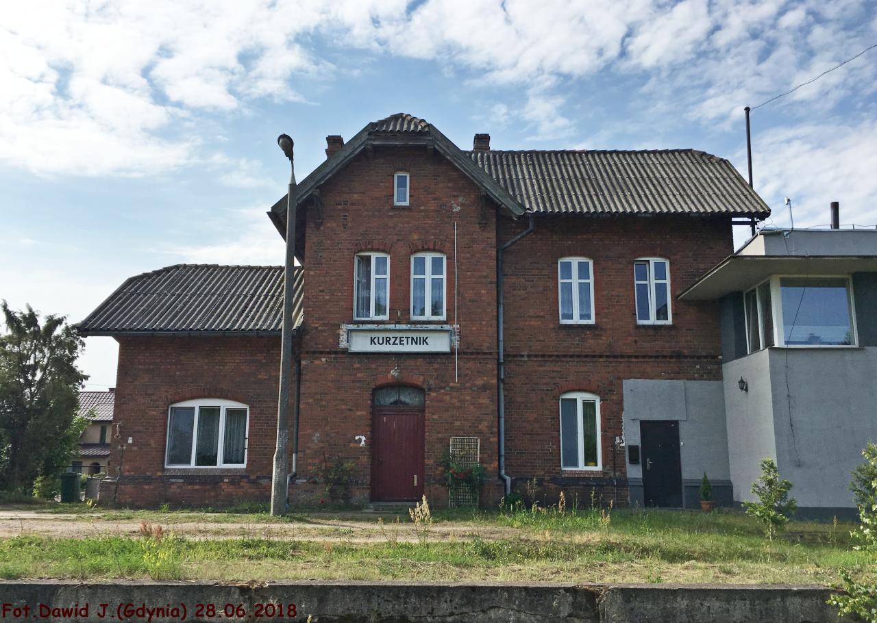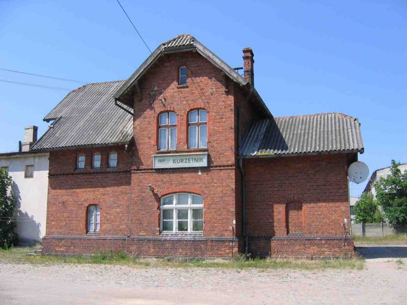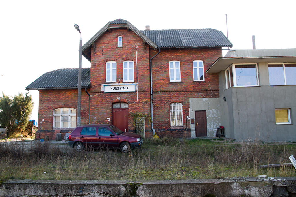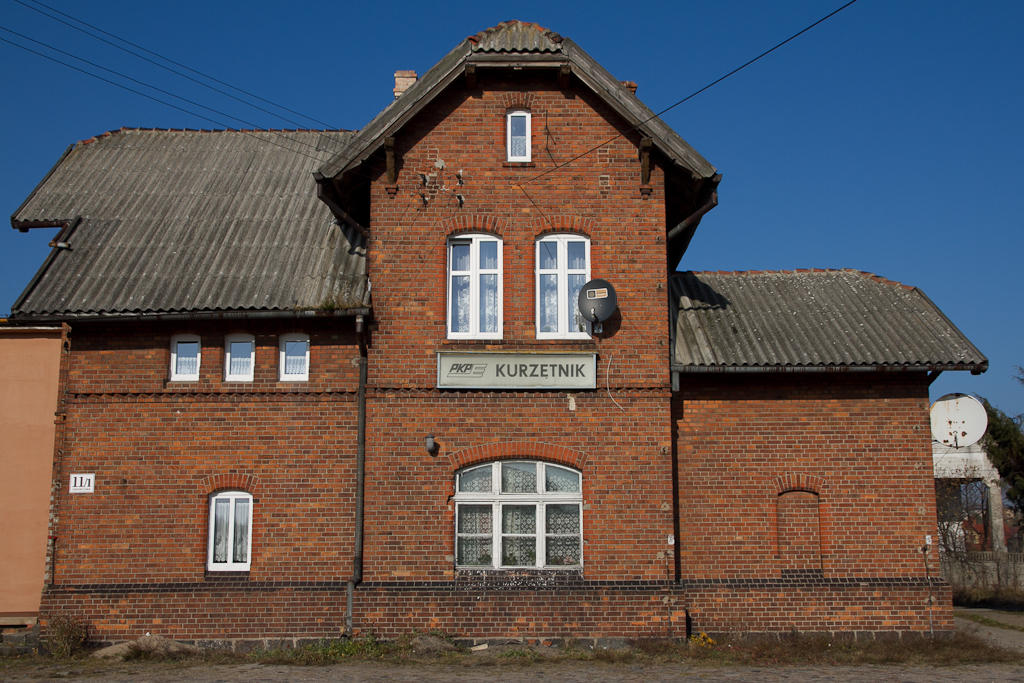 Kurzętnik. Budynek stacyjny od strony podjazdu - nie widać tak bardzo szpecącej go nowoczesnej nastawni…