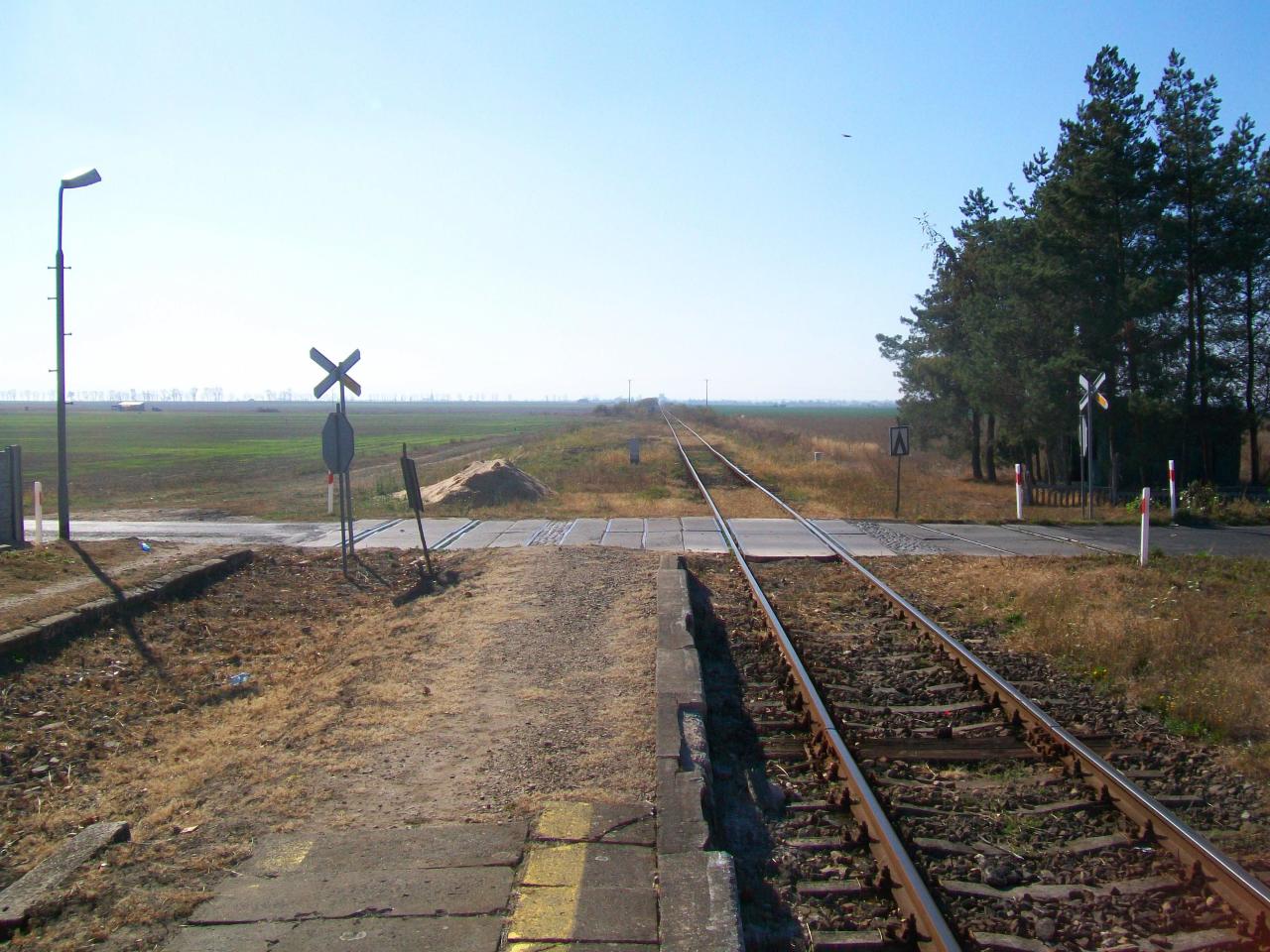 Przejazd kolejowy na szosie łączącej Przylesie Dolne z Lipową Śląską (w tle). Widok w kierunku południowo-wschodnim. W prawo Grodków Śląski i (niegdyś) Szydłów, w lewo perony i Brzeg.