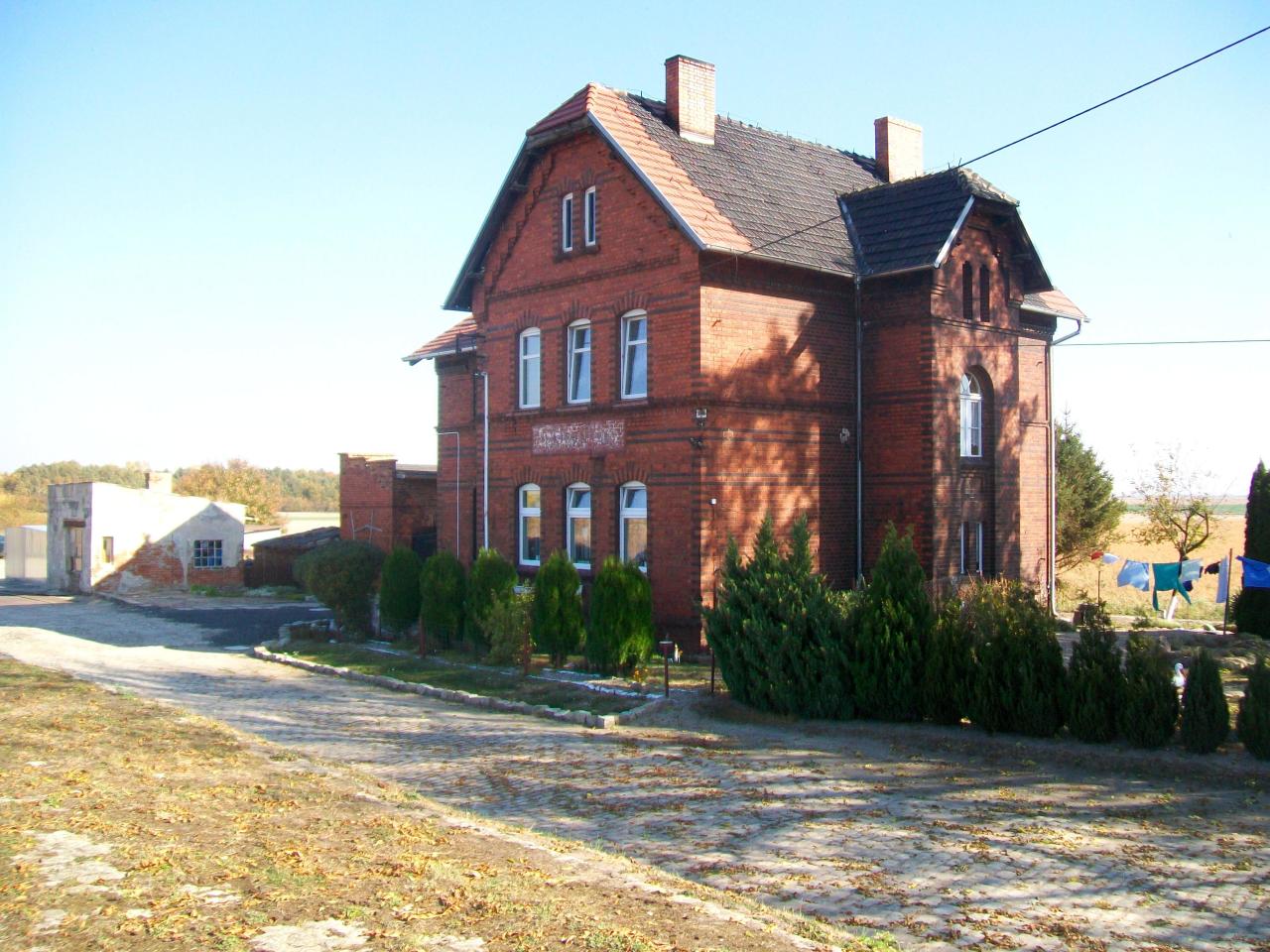 Jak na tak małą stacyjkę, dość sporo zabudowy. Pierwsza z prawej kamienica, dalej dworzec, za którym jest jeszcze jeden budynek mieszkalny. Widok w kierunku północno-wschodnim od strony wjazdów z Grodkowa Śląskiego/Nysy i (dawniej) Szydłowa.