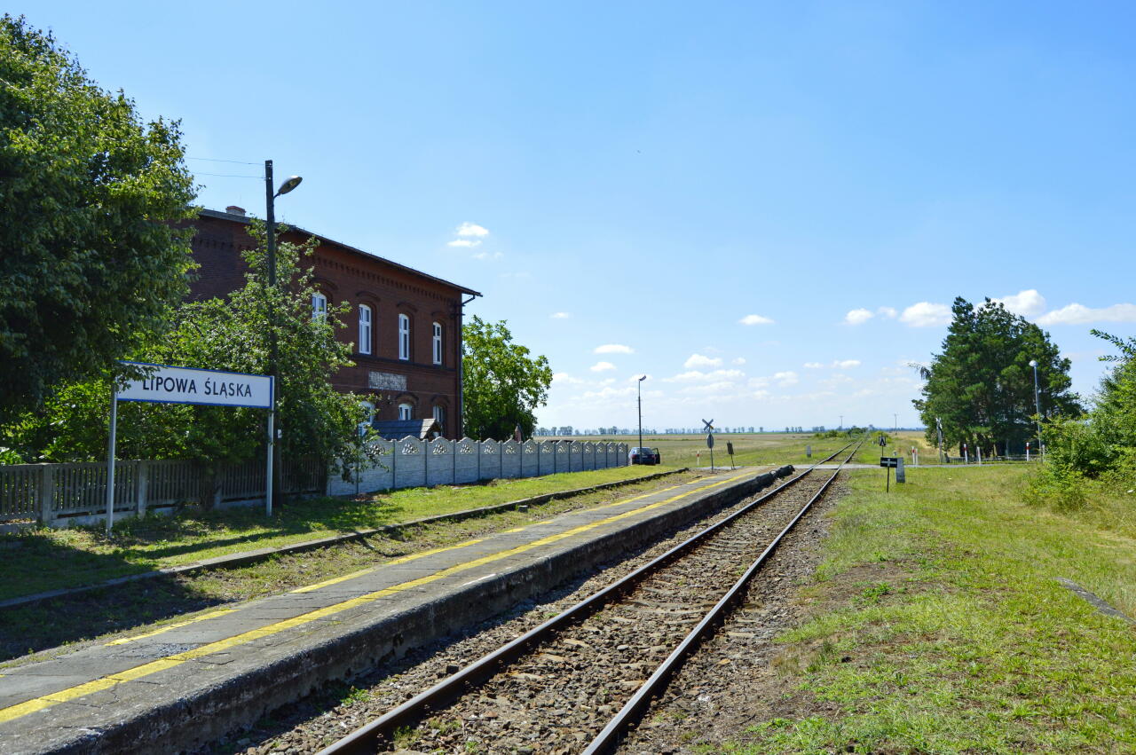 Lipowa Śląska. Widok na perony w kierunku południowym: Grodków Śląski/Nysa, dawniej także Szydłów. Z lewej kolejowy budynek mieszkalny i (poza kadrem) dworzec.