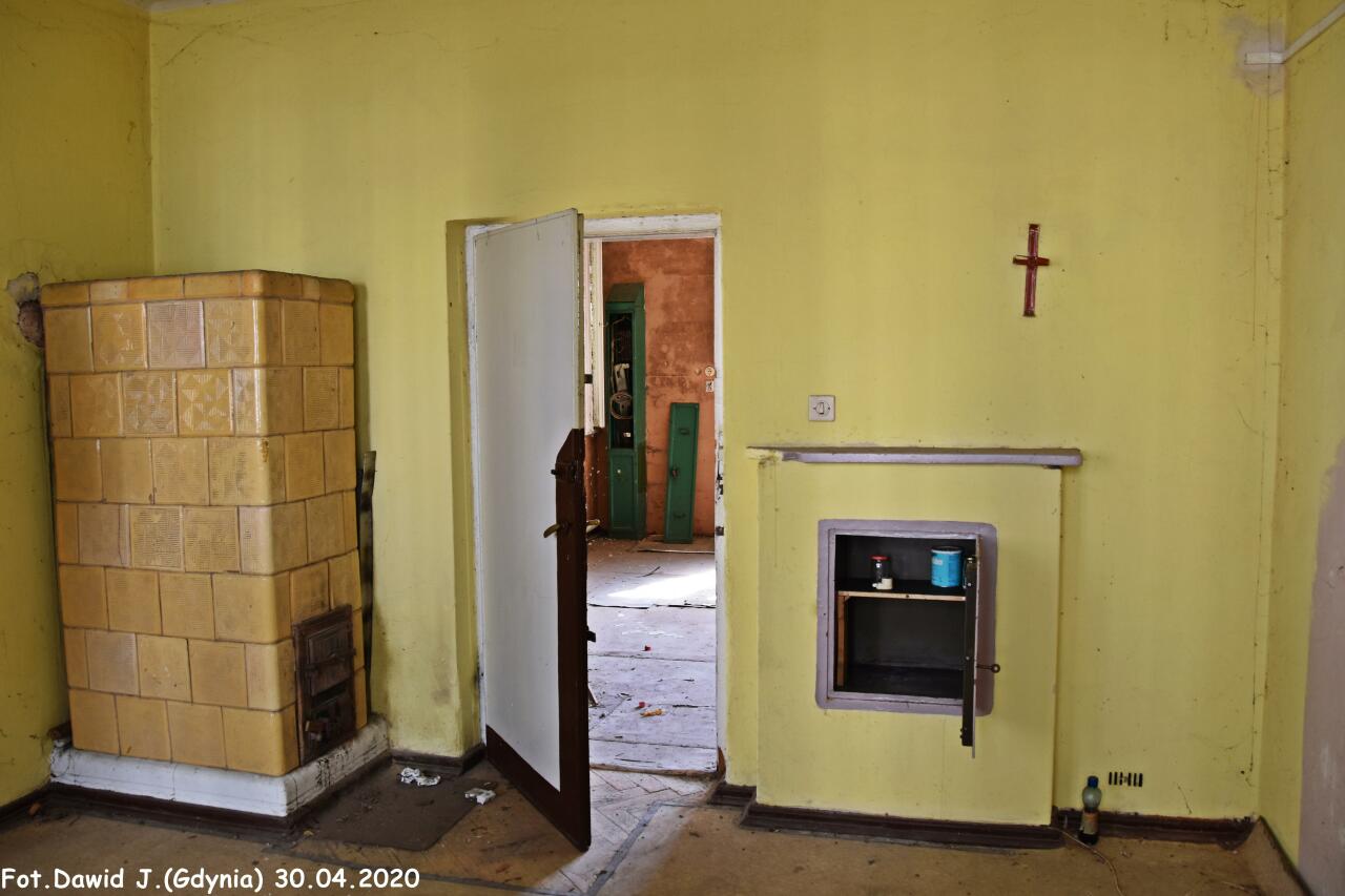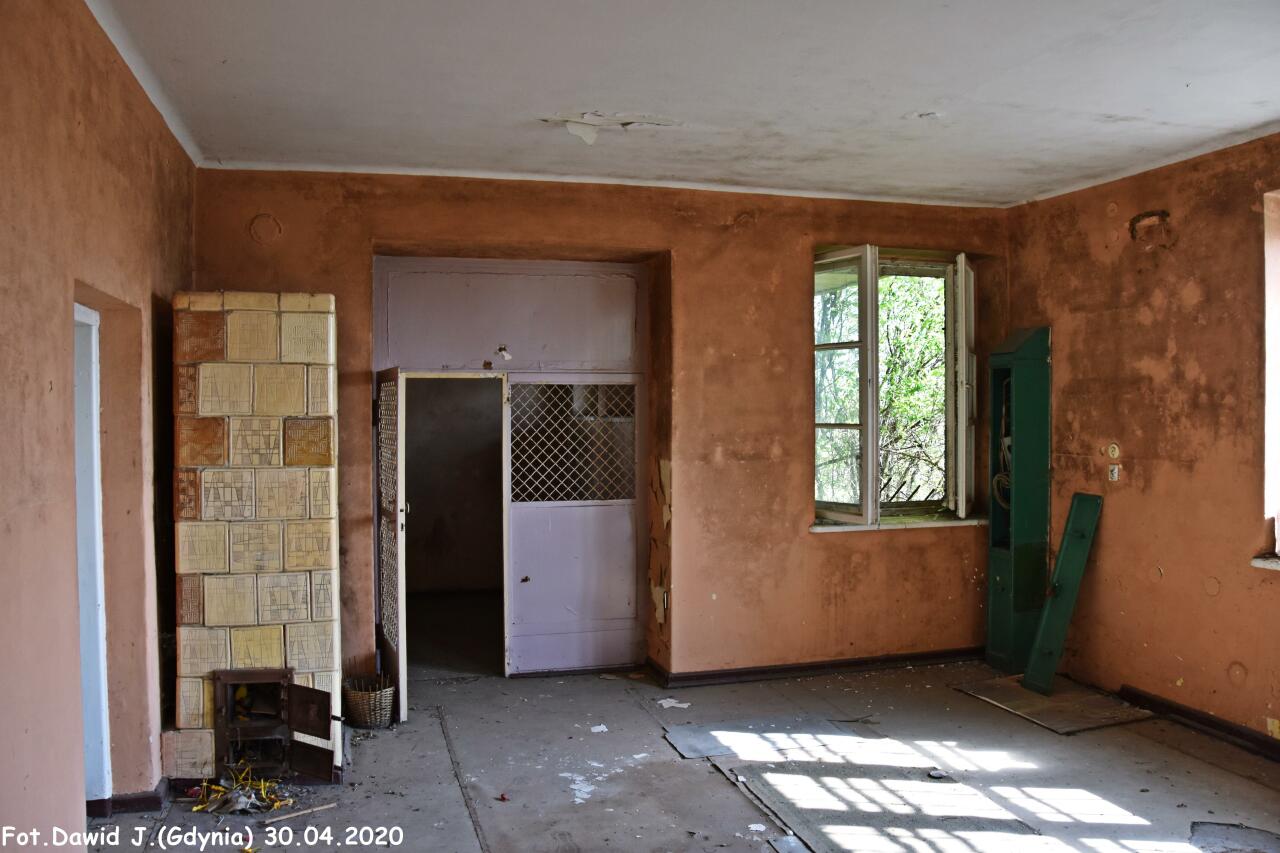 Wnętrze budynku dworcowego. Dawne pomieszczenie dyżurnego ruchu/nastawni.