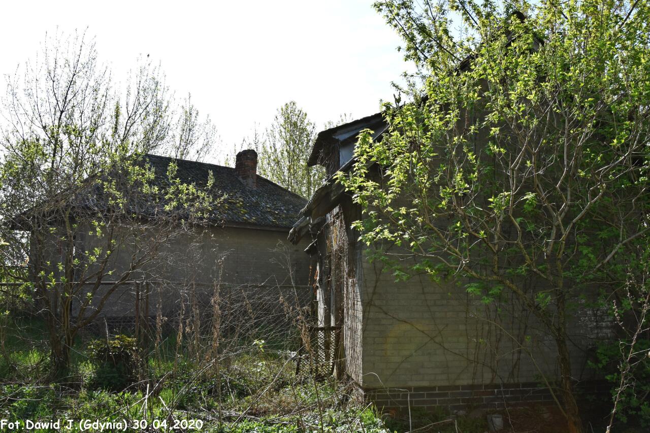 Pobliski budynek gospodarczy widoczny od strony torów. W lewo Sierpc/Kutno, w prawo Brodnica.
