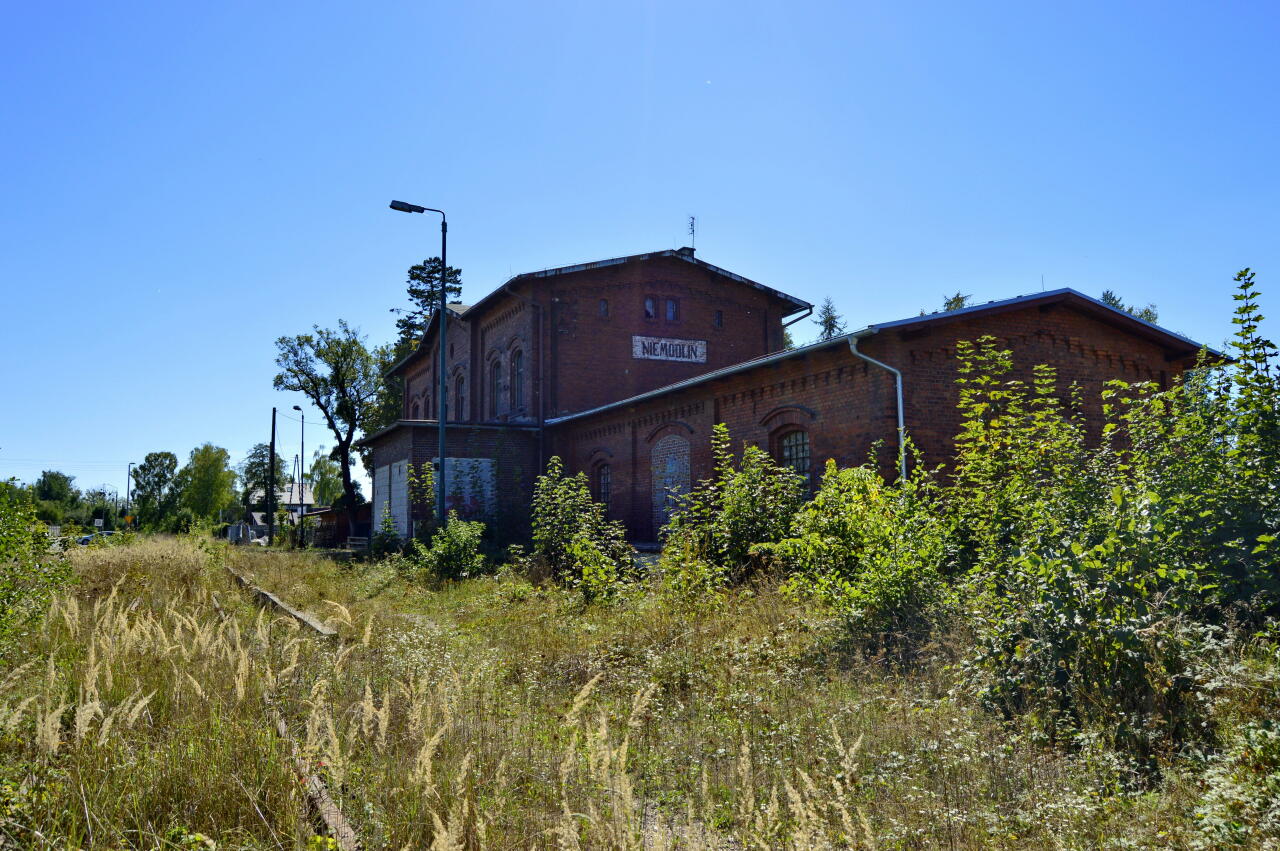 Teren dawnej stacji Niemodlin na wysokości budynku dworca (z lewej). Widok w kierunku Graczy (Lipowej Śląskiej). W przybudówce, na parterze mieściła się nastawnia dysponująca.