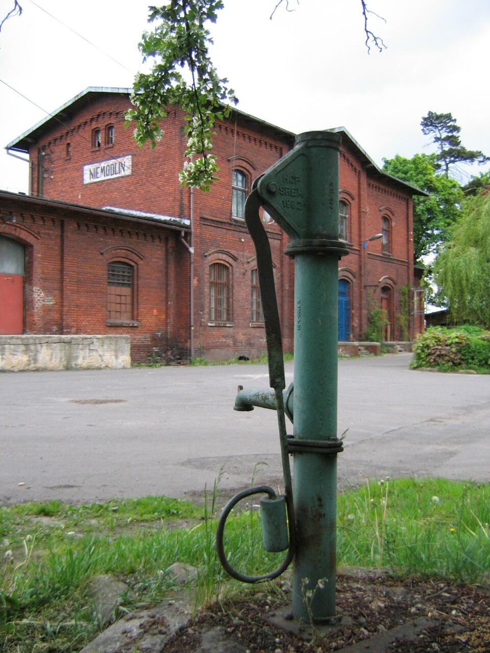 Wyjazd z dawnej stacji Niemodlin w kierunku Graczy (dawniej Lipowej Śląskiej). Z lewej kolejowy budynek mieszkalny.