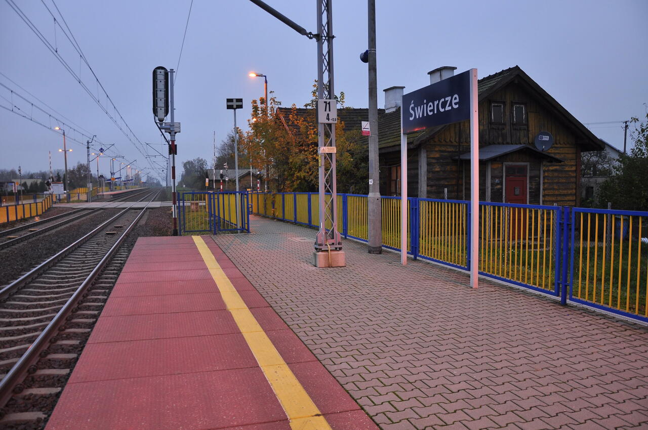 Świercze. Pociąg osobowy Kolei Mazowieckich z Ciechanowa do Warszawy Woli odjechał z toru drugiego przy peronie drugim.