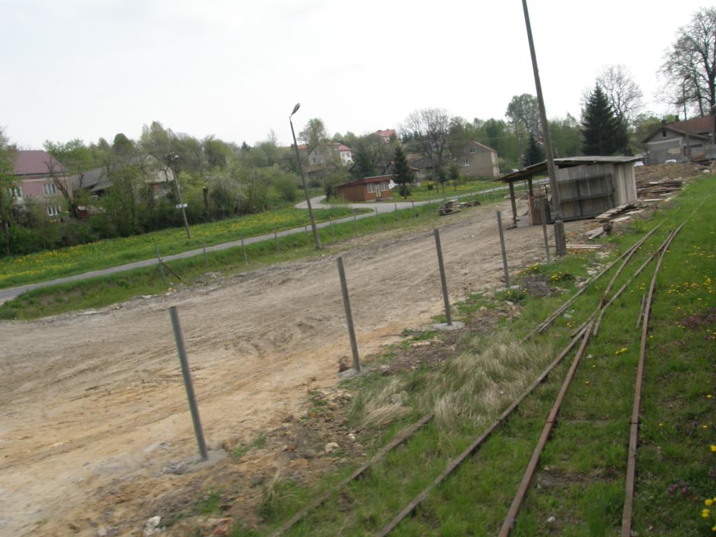 Plac ładunkowy z rozpoczętą inwestycją: ogrodzeniem. Obszar należy do terenu kolejowego. Widok w stronę Przeworska. 33,2 km.