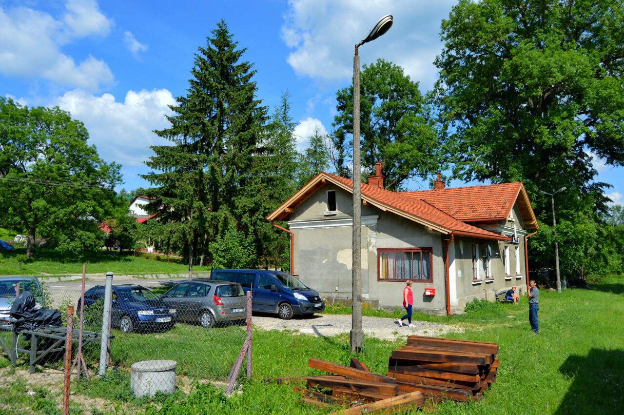 Budynek dworcowy. Widok od strony wjazdu z Dynowa.