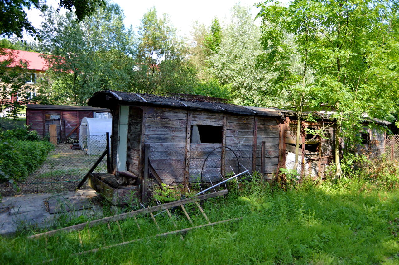 Stare wagony służące obecnie za budynku gospodarcze przy stacji.